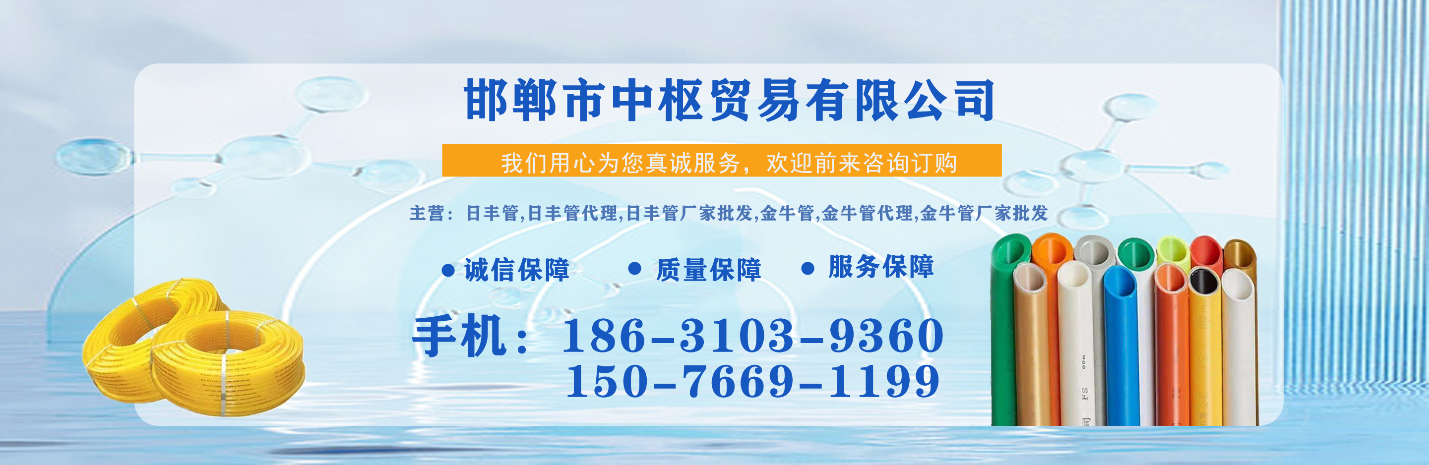 邯鄲市中樞貿易有限公司主營日豐管,日豐管代理,日豐管廠家批發,金牛管,金牛管代理,金牛管廠家批發等,質量可靠,值得信賴!  我公司在產品行業積累了豐富的經驗,具有嚴格的管理制度,同時引進先進的生產設備和生產技術,一如既往的為廣大客戶提供質優價廉的產品。創辦多年來在市場上贏得較好的口碑,銷售網絡覆蓋全國各個省市及地區。  質量為先,信譽為重,管理為本,服務為誠,我們將致力于這一經營理念,關注時代發展,用先進的技術,不斷創新求實,以更優的質量,更好的服務來滿足我們的廣大客戶。  公司理念:勇于進取、開拓創...